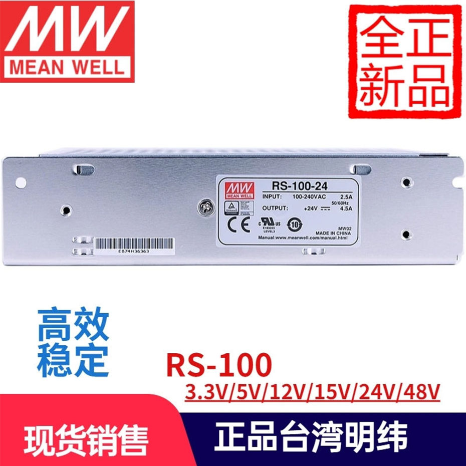‌RS-100系列‌:包括3.3V、5V、12V、15V、24V和48V等多种电压选项,功率范围从15W到100W‌。具体型号如RS-100-5(5V16A)、RS-100-12(12V8.5A)、RS-100-15(15V7A)、RS-100-24(24V4.5A)和RS-100-48(48V2.3A)‌。